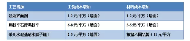 那么,剛才敘述的那些材料或工藝很明顯按重慶目前絕大多數(shù)裝飾公司的報(bào)價(jià)是做不出來的,那么要按以上敘述的做,我們的顧客需要增加多少成本???下面這張表為一個(gè)參考表格,同時(shí),我是針對(duì)裝飾公司運(yùn)營(yíng)所做的表格,包含了一些費(fèi)用和利潤(rùn),如果是清包工工人工價(jià)基本差距不大,靠底線就好,材料可以打個(gè)8折左右算費(fèi)用,注意,這個(gè)是在現(xiàn)有工藝收費(fèi)上增加的,并不是這個(gè)工序就是收費(fèi)這么多:
